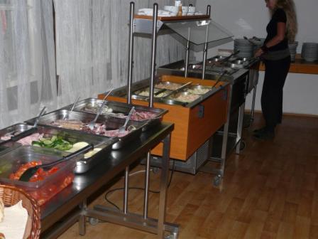 Cena 250,- Kč za osobu na den obsahuje, jak ubytování v chatkách, tak plnou penzi. Obědy, snídaně i večeře jsou formou rautu.